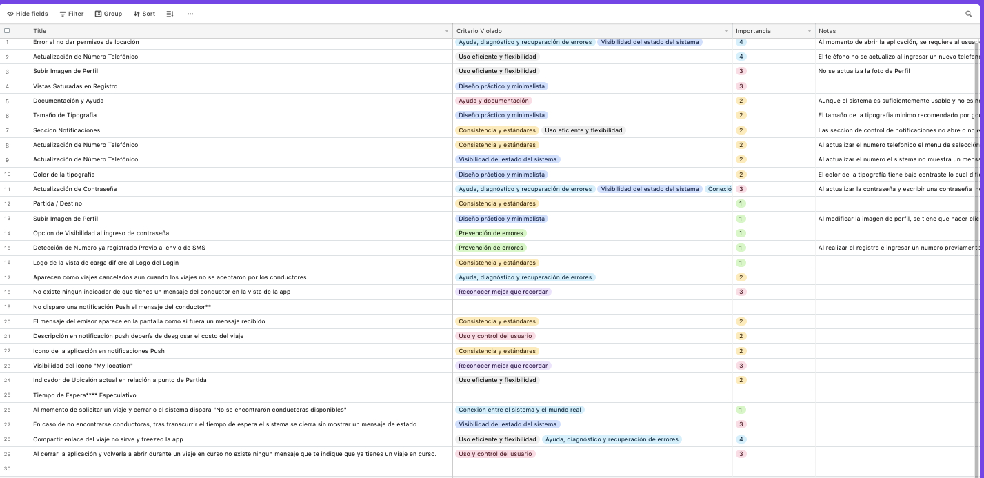 Heuristic analysis of the driver's app